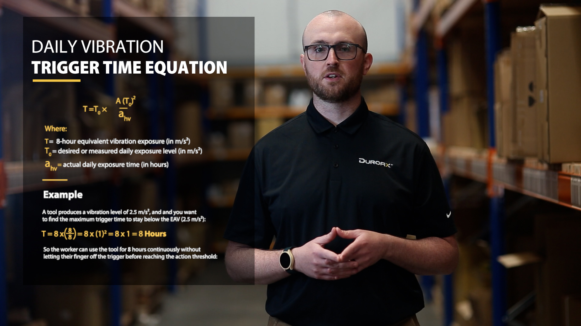 - Exposure Action Value (EAV): 2.5 m/s² A(8)